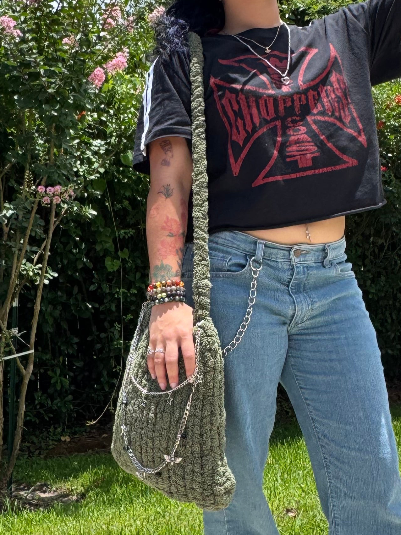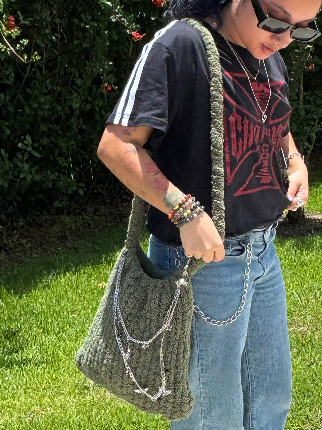 Forest green thick yarn , handmade into a lovely soft useful satchel. Optional add-on chain or clip for styling. All colors available.