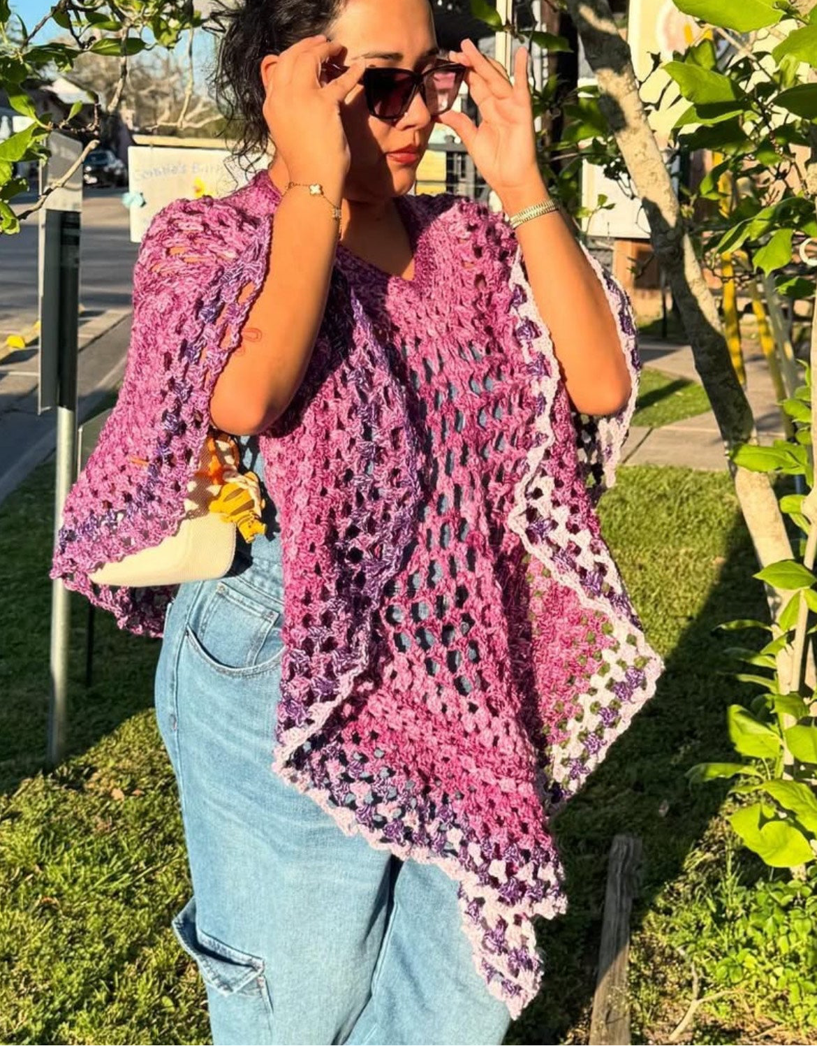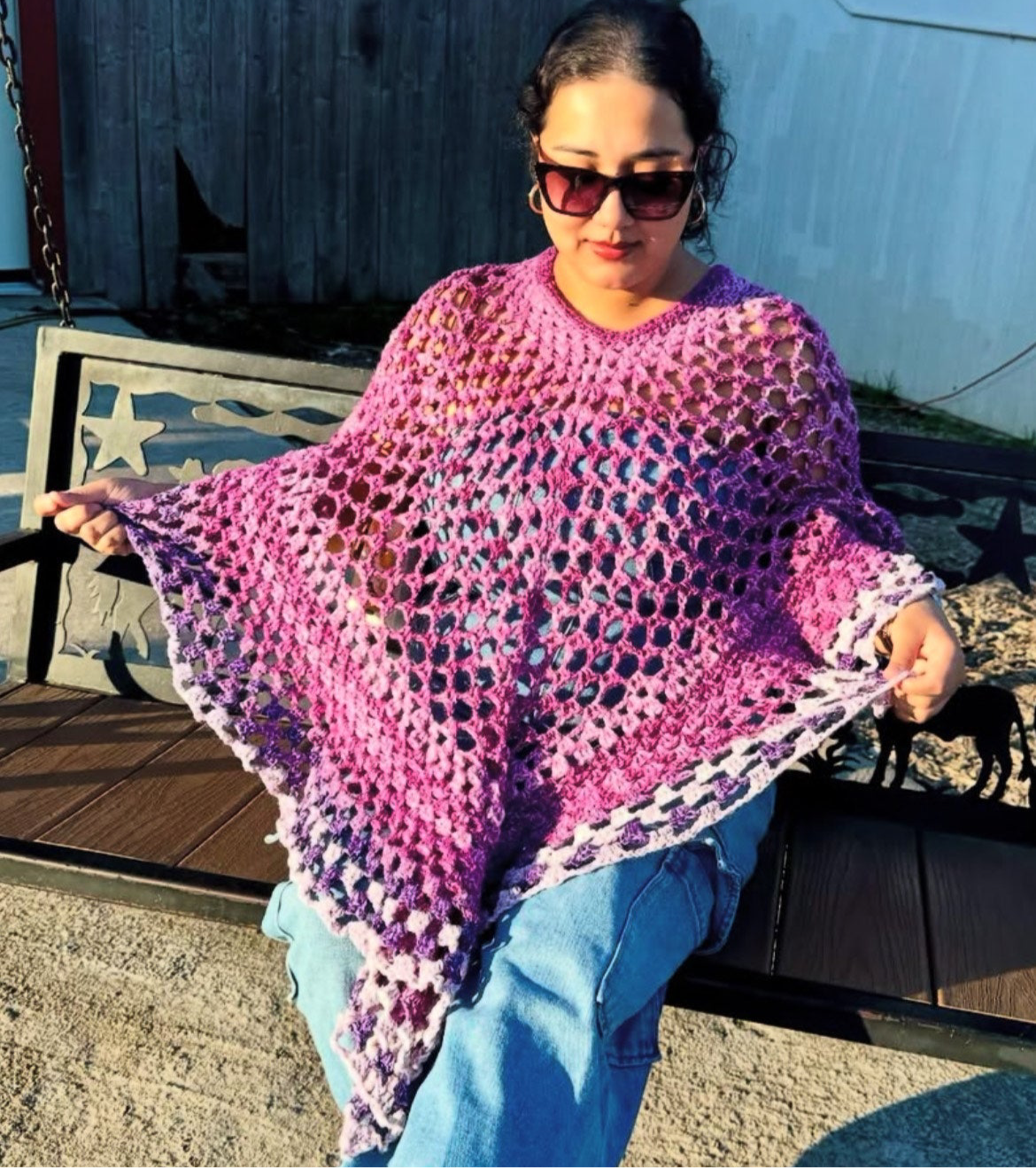 Handmade custom crochet cotton poncho, with ombre purple and white trim. Custom orders available!
