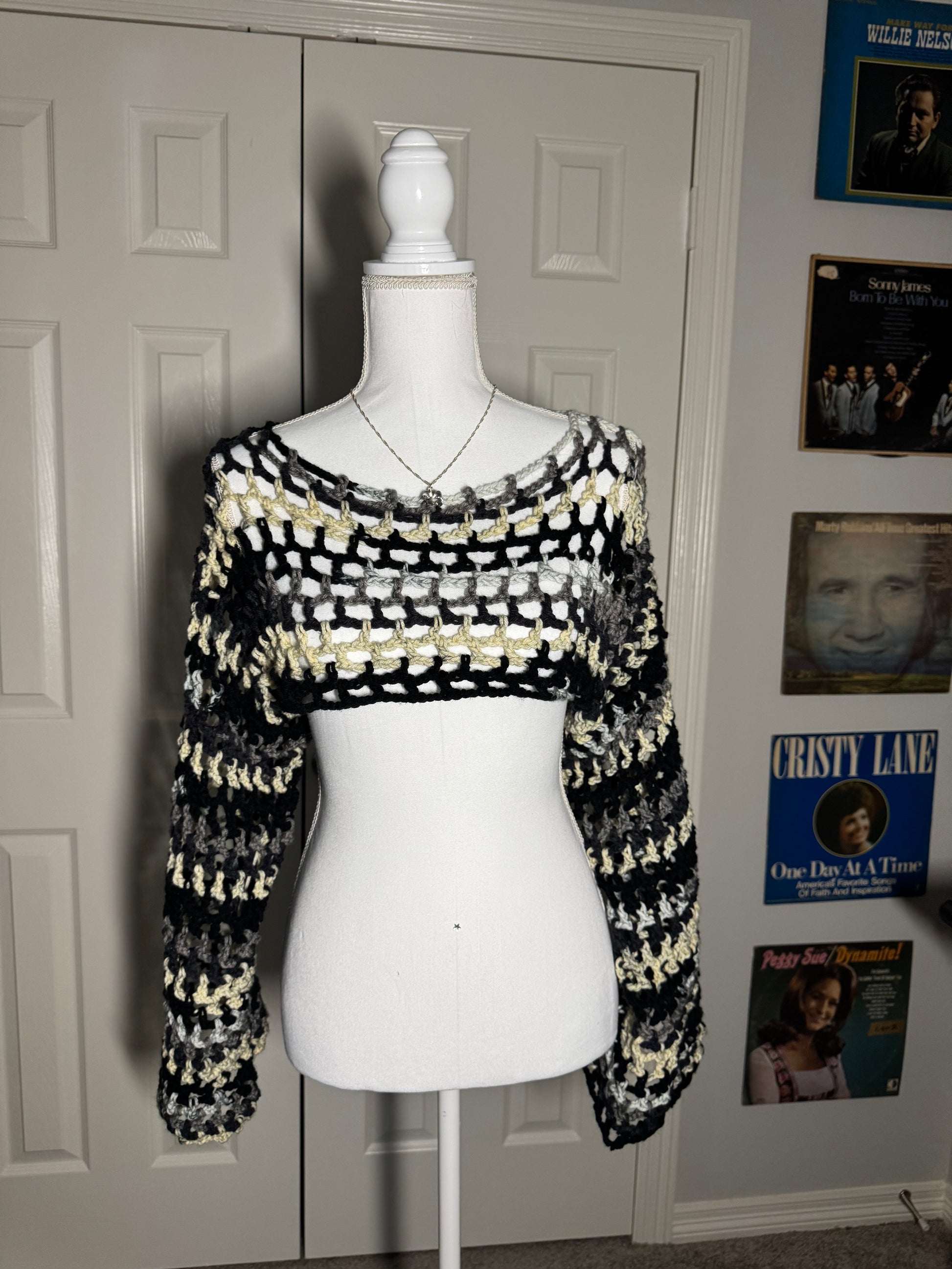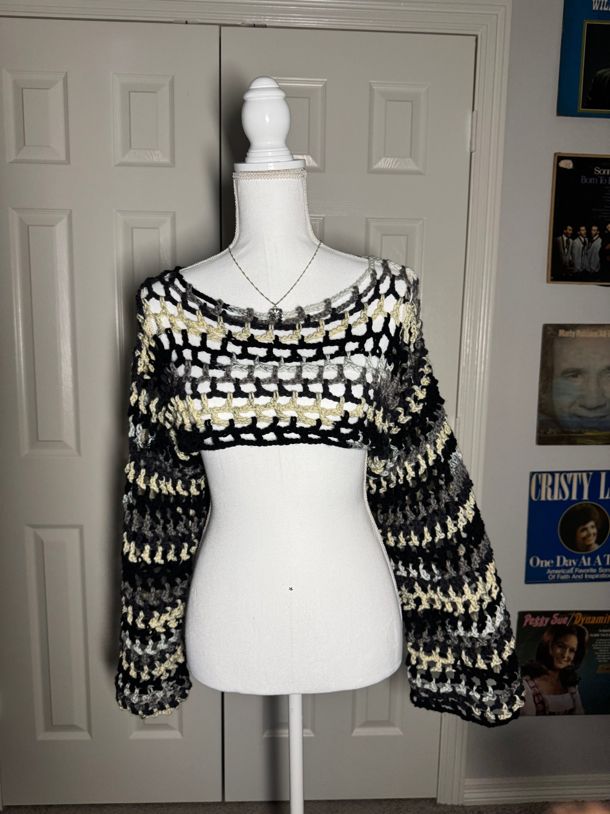 Multicolored grey cropped shrug, throw on for a pop in your fit , or a touch that brings everything together.